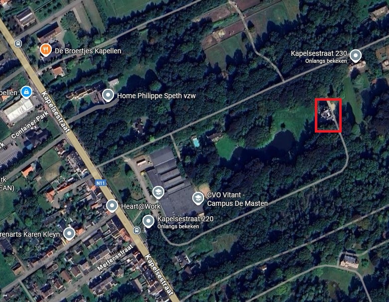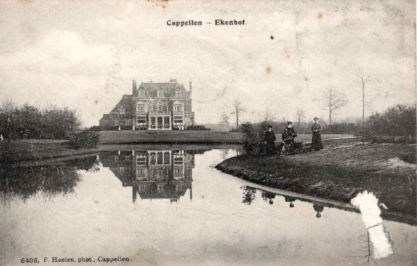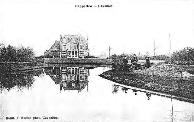 KASTEEL "EKENHOF" Het 'Ekenhof' werd in 1908 gebouwd door Gustave Martens, een handelaar in meststoffen. Op 30 oktober 1928 kocht Eric Thornton het kasteeldomein in een openbare verkoop. Eric Thornton was medebeheerder van het, nog bestaande, scheepvaartbedrijf De Keyser-Thornton, met zetel te Antwerpen. Op 25 maart 1930 werd het 'Ekenhof' verworven door Robert-Gustave-Frédéric Grisar en zijn echtgenote Marguérite-Emelie Good. Tijdens Wereldoorlog Il stond het Ekenhof leeg en op 25 april 1946 werd het kasteelgoed aangekocht door Albert-Bernard Van Damme, een brouwer uit Jupille. Op 5 augustus 1960 veranderde het 'Ekenhof' nogmaals van eigenaar en de gelukkige bezitters, Joseph Neuckens en zijn echtgenote Josphina Wuyts uit Brasschaat, tekenden het koopcontract bij notaris De Ridder. De volgende eigenaar van het kasteeldomein was Albertus-Julianus-Joannes Pelckmans, gehuwd met Maria-Augusta Peeters. Op het terrein werd dan het bedrijfsgebouw van 'De Nederlandsche Boekhandel', later 'Pelckmans Uitgevers' opgebouwd. Momenteel wordt het gebouw gebruikt door het provinciaal onderwijs, met CVO 'De Masten'.