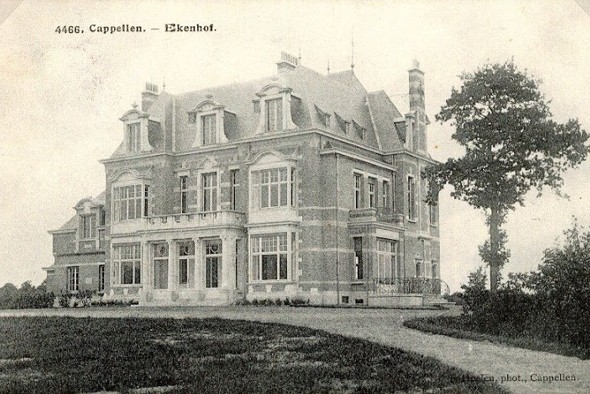 KASTEEL "EKENHOF" Het 'Ekenhof' werd in 1908 gebouwd door Gustave Martens, een handelaar in meststoffen. Op 30 oktober 1928 kocht Eric Thornton het kasteeldomein in een openbare verkoop. Eric Thornton was medebeheerder van het, nog bestaande, scheepvaartbedrijf De Keyser-Thornton, met zetel te Antwerpen. Op 25 maart 1930 werd het 'Ekenhof' verworven door Robert-Gustave-Frédéric Grisar en zijn echtgenote Marguérite-Emelie Good. Tijdens Wereldoorlog Il stond het Ekenhof leeg en op 25 april 1946 werd het kasteelgoed aangekocht door Albert-Bernard Van Damme, een brouwer uit Jupille. Op 5 augustus 1960 veranderde het 'Ekenhof' nogmaals van eigenaar en de gelukkige bezitters, Joseph Neuckens en zijn echtgenote Josphina Wuyts uit Brasschaat, tekenden het koopcontract bij notaris De Ridder. De volgende eigenaar van het kasteeldomein was Albertus-Julianus-Joannes Pelckmans, gehuwd met Maria-Augusta Peeters. Op het terrein werd dan het bedrijfsgebouw van 'De Nederlandsche Boekhandel', later 'Pelckmans Uitgevers' opgebouwd. Momenteel wordt het gebouw gebruikt door het provinciaal onderwijs, met CVO 'De Masten'.